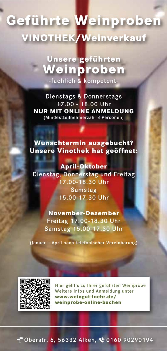 Hier kommen Sie zu unserer neuen Vinothek mit allen wichtigen Infos.
